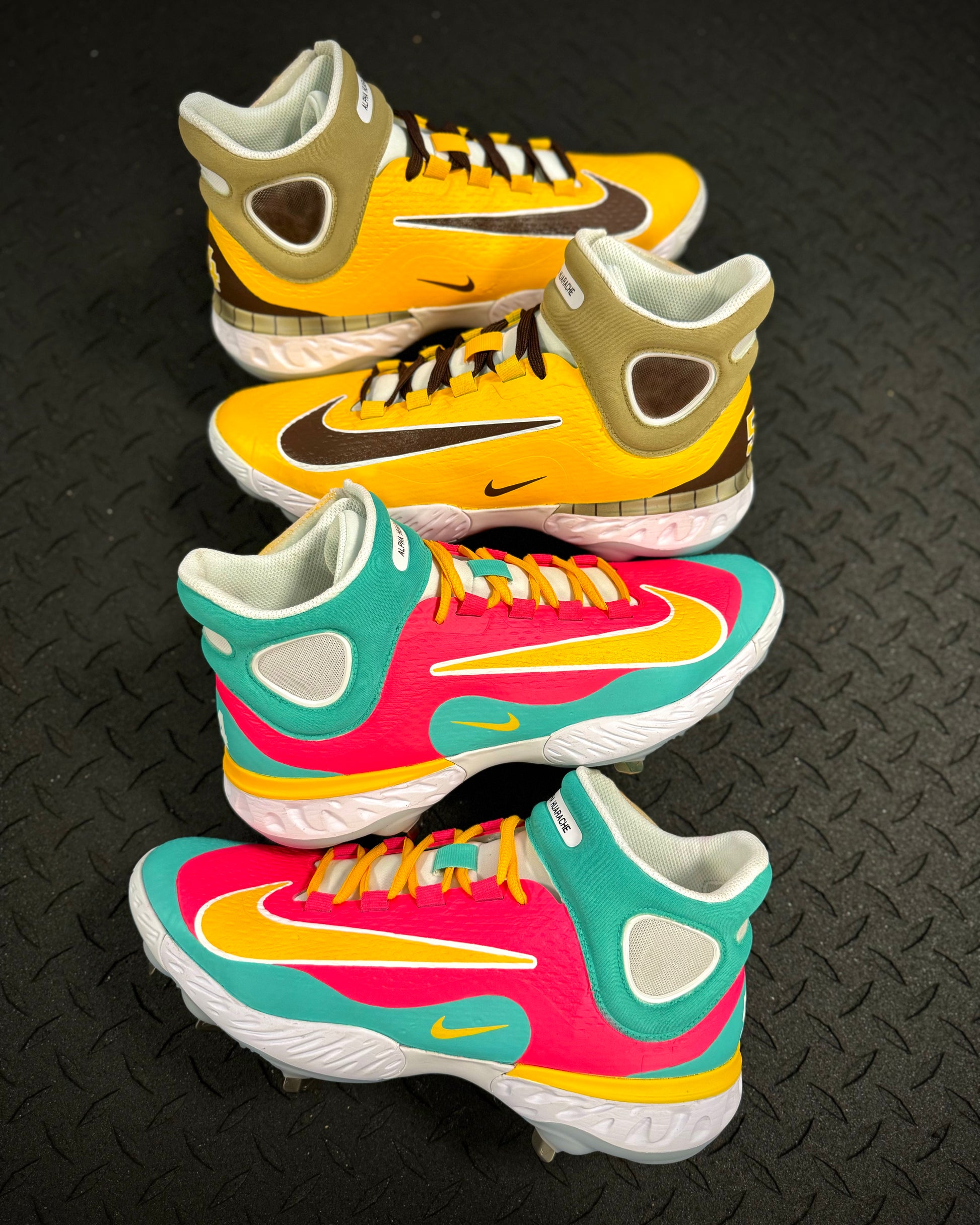 Nike Huarache Elite 4 Metal Baseball Cleats. Cleats are brand new, but have been prepped for painting and must be purchased alongside customization.